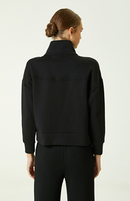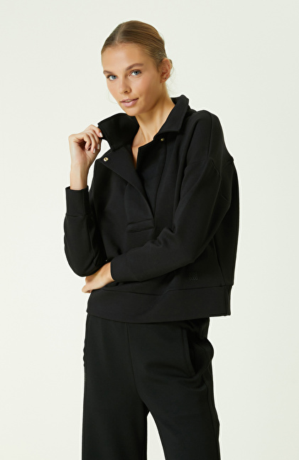 Çıt Çıt Detaylı Siyah Sweatshirt