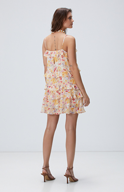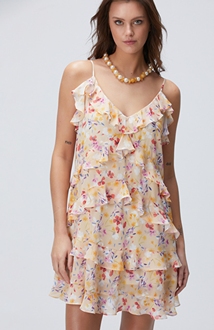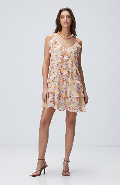 Çok Renkli Desenli Mini Elbise