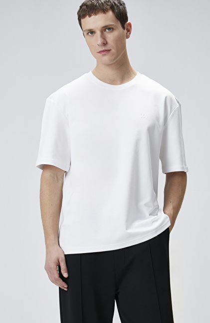 Comfort Fit Beyaz Bisiklet Yaka T-shirt