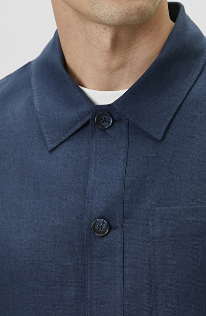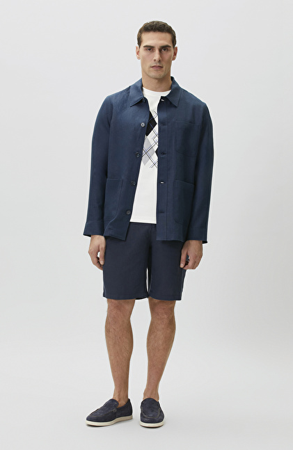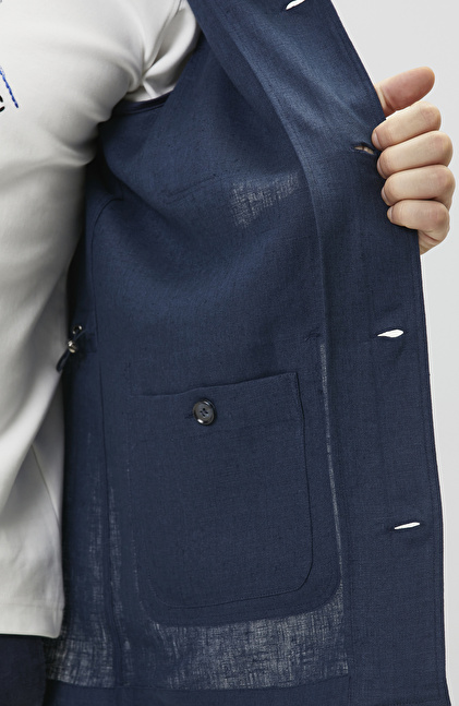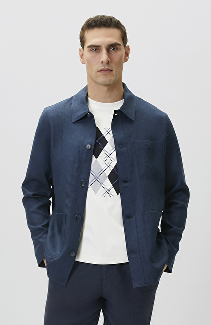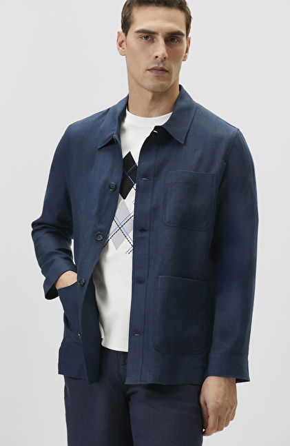 NETWORK Comfort Fit Lacivert Cep Detaylı Keten Dış Gömlek