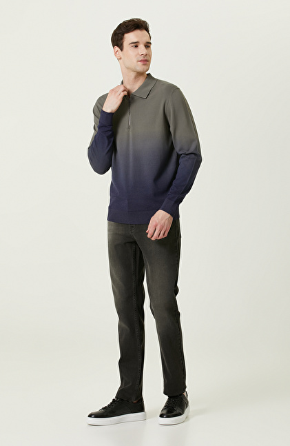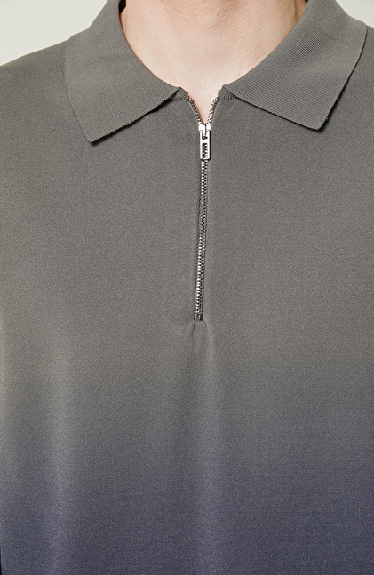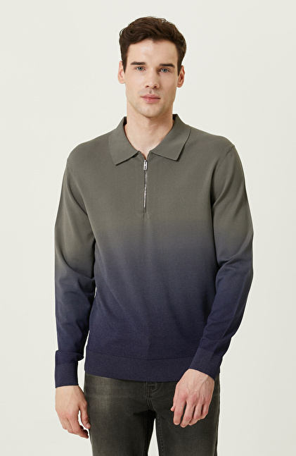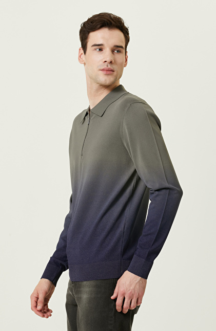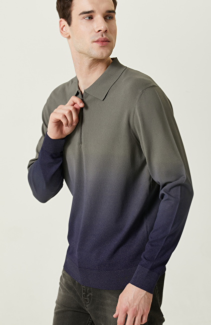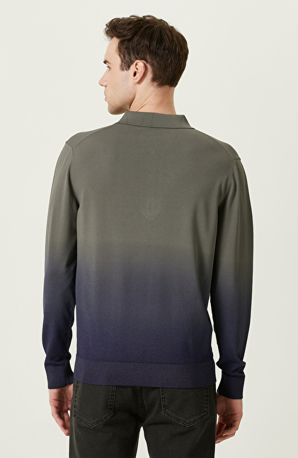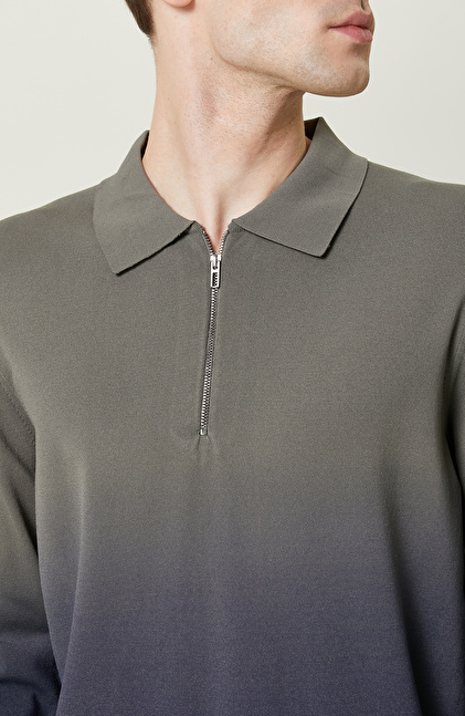 Degradeli Haki Polo Yaka Triko Kazak