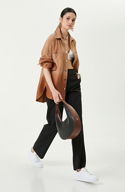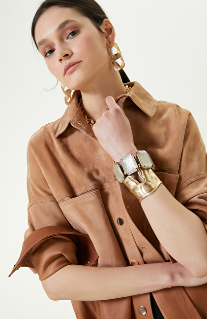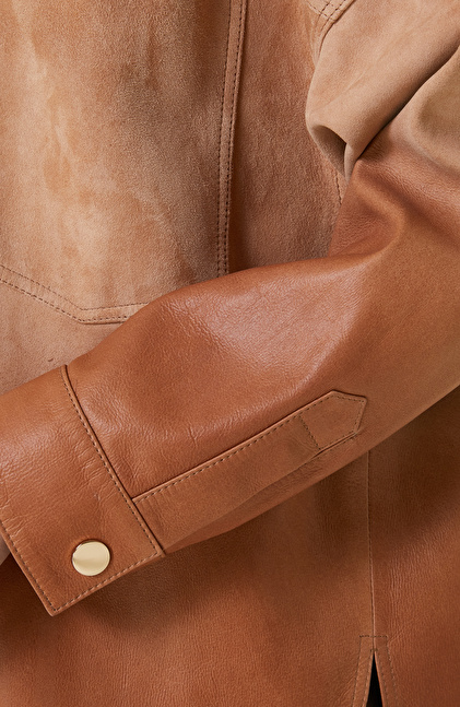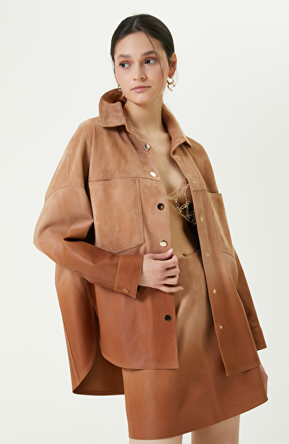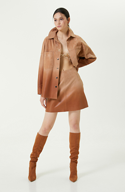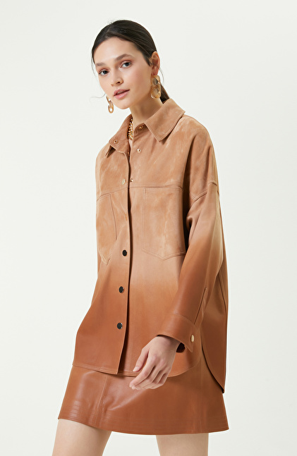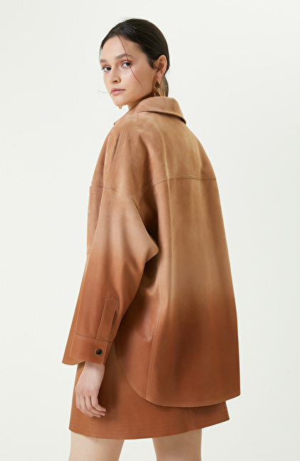 Degradeli Kahverengi Deri Gömlek