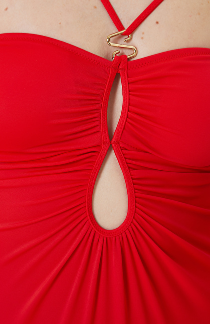 NetWork'ün rengarenk ve lüks parçalarını içeren Beach Wear koleksiyonunda yer alan Dekolteli Kırmızı Mayo, özgüveni yüksek kadınlara hitap eder. Yaz kombinleri için tüm özelliklere sahip kırmızı mayo dekoltesiyle, feminen stilinizi ortaya çıkarmanıza yardımcı olur. Penye kumaşı rahat hissettirirken aynı zamanda vücudunuzu saracak esnekliğe sahiptir. Yüksek kaliteli kumaşı, yumuşak dokusu ile tüm gün giymeye uygundur. Ayarlanabilir askıları önde birleşerek dekolteye tutturulmuştur. Askılar hem ön hem de arka kısımdan çıkarılabildiği için mayoyu straplez olarak da kullanabilirsiniz. Siz de parlak kırmızı renkteki mayoyu; fuşya parmak arası terlik, sarı hasır çanta, hasır şapka ve beyaz akrilik takılarla kombinleyebilir, benzersiz görünümler elde edebilirsiniz.