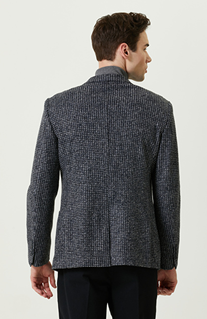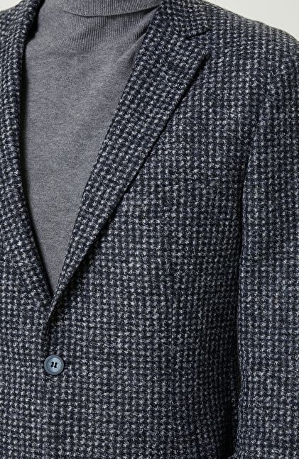Dokuma Mono Yaka Lacivert Desenli Ceket