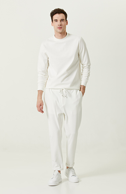 NetWork Smart Casual koleksiyonunun sevilen parçası olan Duble Paça Bağcıklı Ekru Eşofman Altı, günlük kombinleriniz için uygundur. Lüks ve konforlu yapıyı bir arada sunarak hem rahat etmenizi hem de şık görünmenizi sağlar. Yüksek kaliteye sahip kumaşlar kullanılarak üretilmiş olup giydiğinizde üzerinizde kusursuz bir görünüm oluşturur. Basic tasarımı ise zamansız moda çizgisini yansıtarak kış sezonunda pek çok kombininize uyum sağlar. Şehirli ve modern bir stil oluşturan bu eşofman altı, sosyal yaşamda kullanabileceğiniz tarzdadır. Yan cepleri, duble paçası ve bağcıklı bel detayları ile işlevsel kullanım sunar. Ekru rengi ile bu eşofman altının üstüne ekru sweatshirt giyebilir ve kombininizi beyaz sneaker ile tamamlayabilirsiniz.