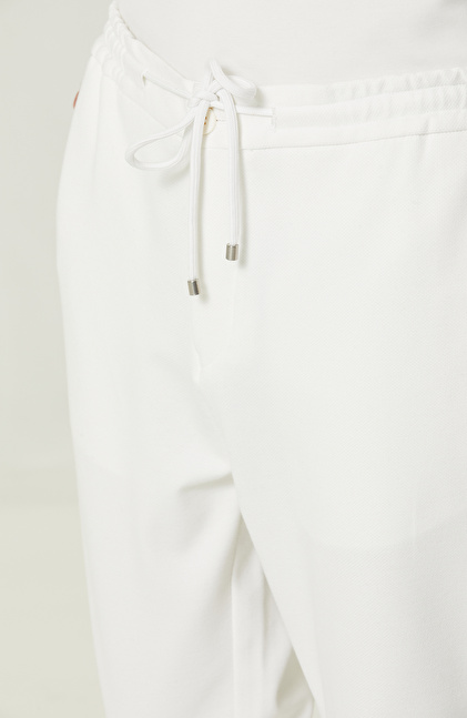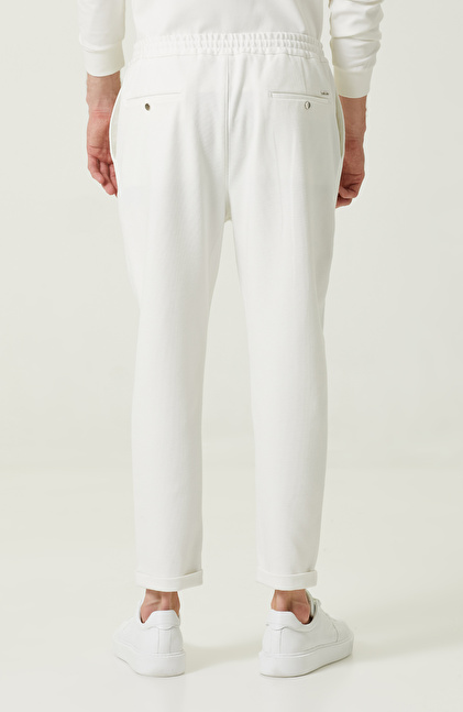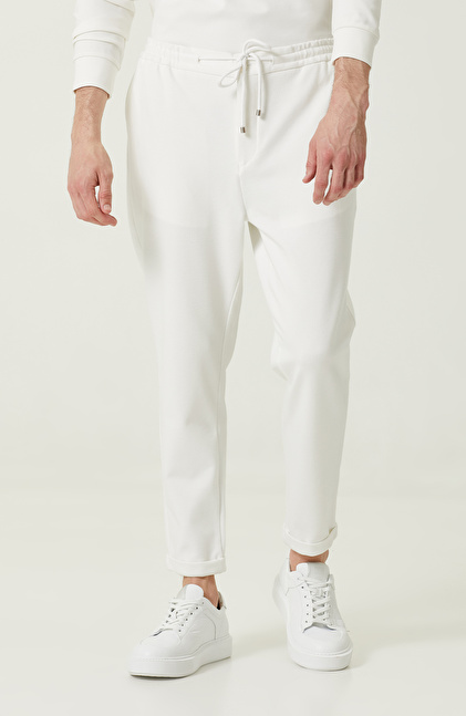 Duble Paça Bağcıklı Ekru Eşofman Altı