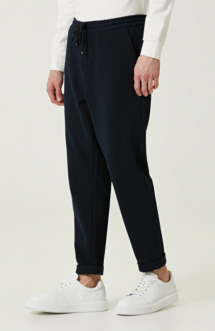 Duble Paça Bağcıklı Lacivert Eşofman Altı