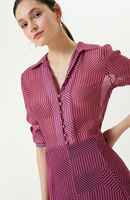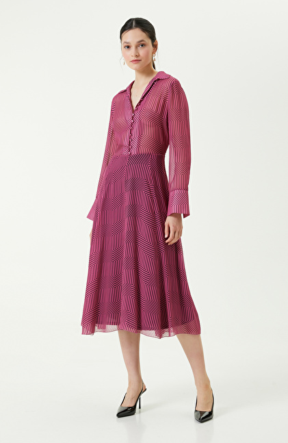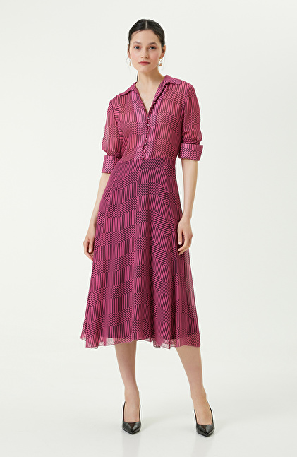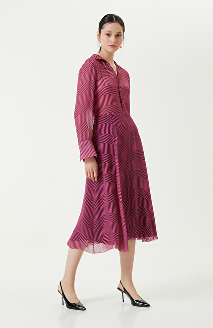 NetWork kış koleksiyonunun Archi Minimal serisinde yer alan Düğme Detaylı Fuşya Uzun Kollu Elbise, zamansız şık kadınların smart casual stilleri için mükemmeldir. Yaka kısmından bele kadar düğmeli tasarımı, dilediğiniz gibi şekillendirmenizi ve çekici görünümler elde etmenizi sağlar. Uzun kol ve gömlek yakaya sahip şık tasarım, sonbahar/kış kombinlerinize eşlik eder.