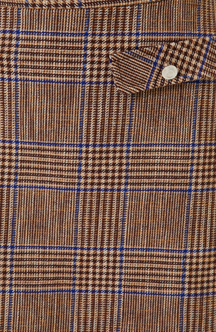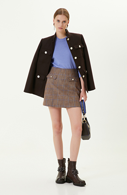 Düğme Detaylı Kahverengi Ekose Mini Etek
