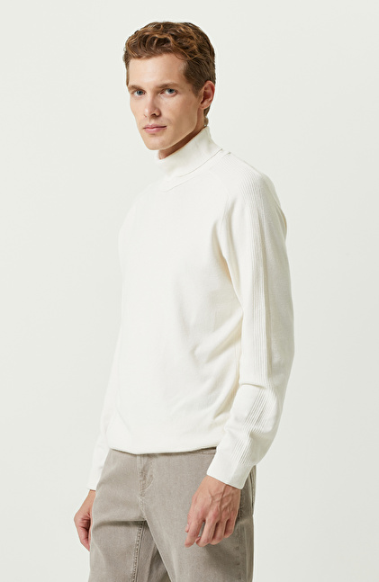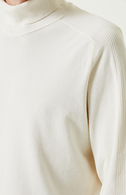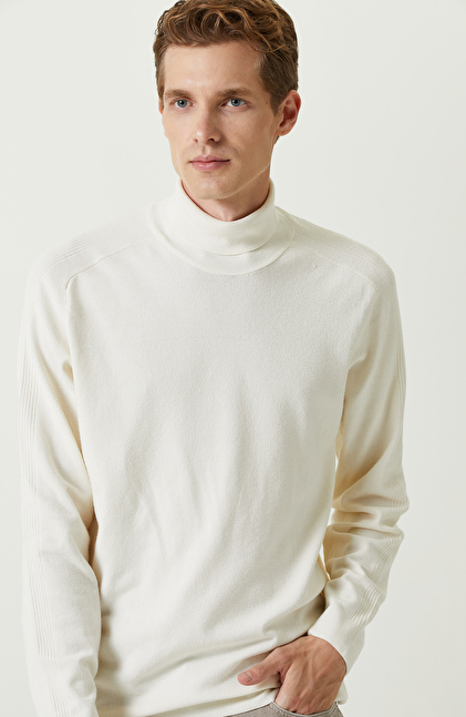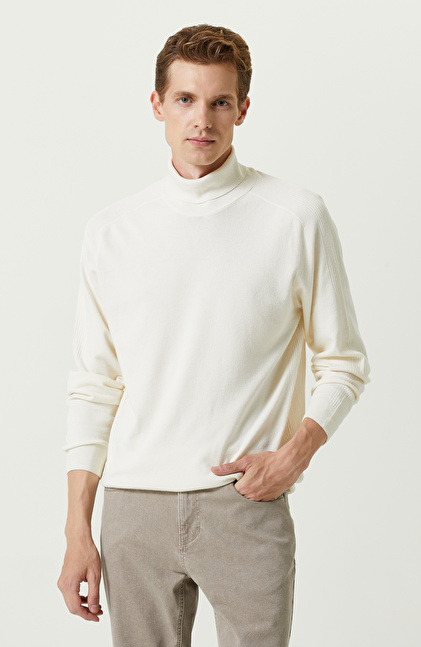 Ekru Balıkçı Yaka Kazak