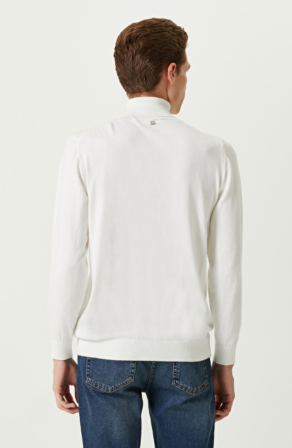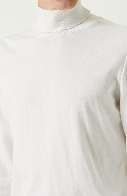 Ekru Balıkçı Yaka Uzun Kollu Kazak