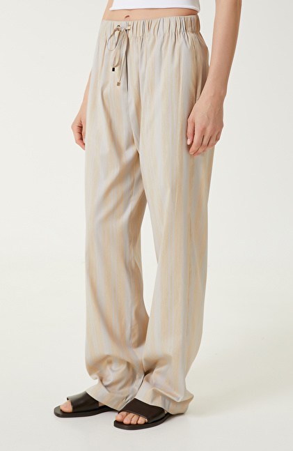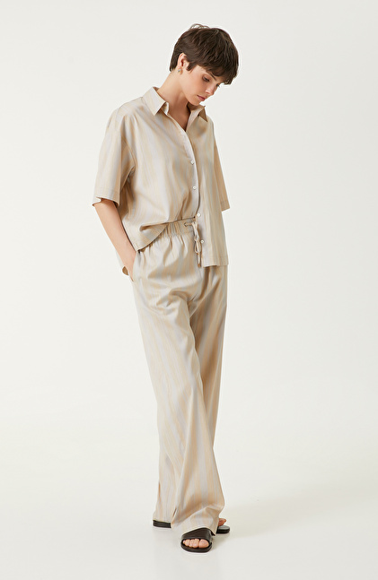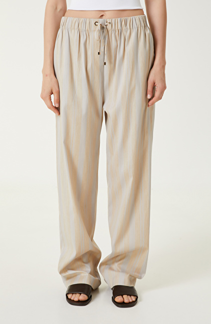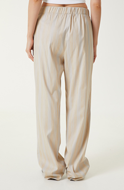 Ekru Bej Çizgili Pantolon