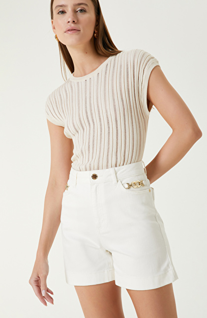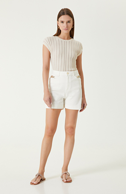 Ekru Denim Şort