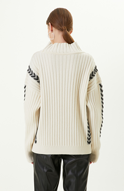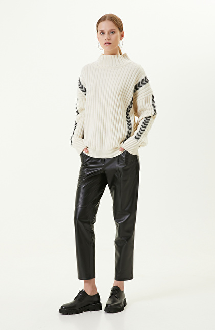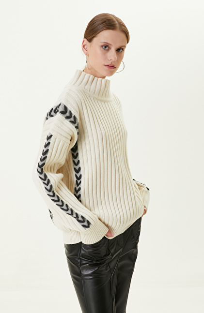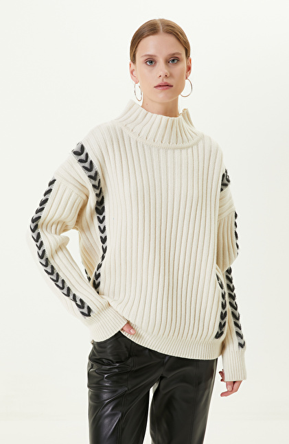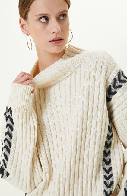 En son moda trendlerini lüks ve konfor odaklı olarak yorumlayan NetWork, Ekru Dik Yaka Triko Kazak ile gustosu yüksek kadınların kış tarzını zirveye taşır. Regular fit kesim sayesinde rahat bir silüete sahip olan triko kazak, casual kombinler için idealdir. Dik yaka ve uzun kol olarak şekillendirilmiş yünlü tasarım, yumuşak ve lüks dokusuyla tam bir sezon temelidir. Kontrast saç örgü işlemeli detaylar ise soğuk günler boyunca günlük kombinlere hareket katar. Siz de ekru parçayı; deri siyah pantolon, bağcıklı makosen ayakkabı ve halka küpelerle sokak stilinden ilham alarak kombinleyebilir, kusursuz tarzınızla göz kamaştırabilirsiniz.