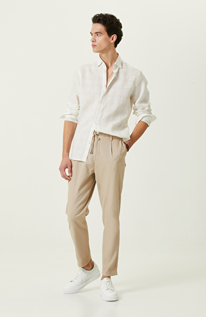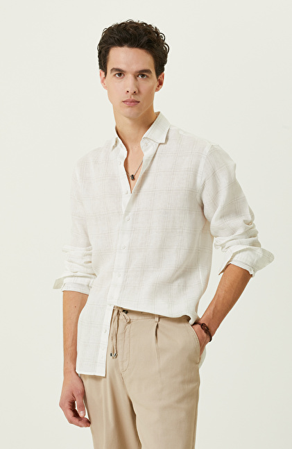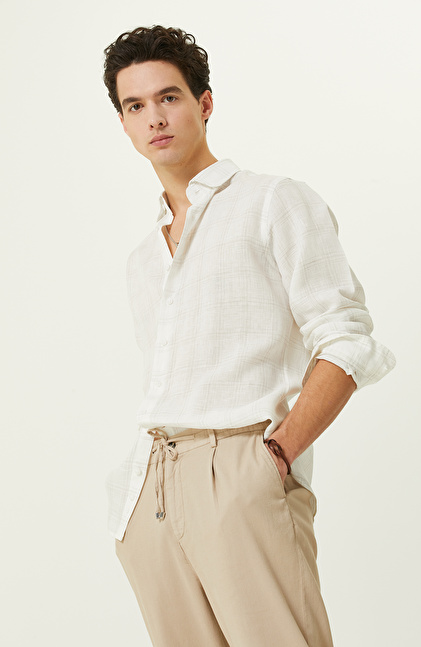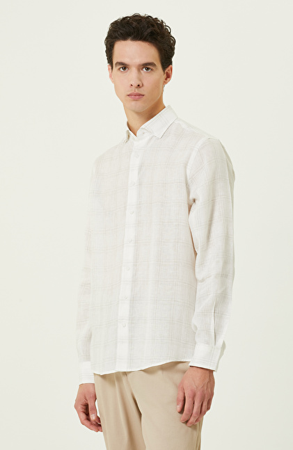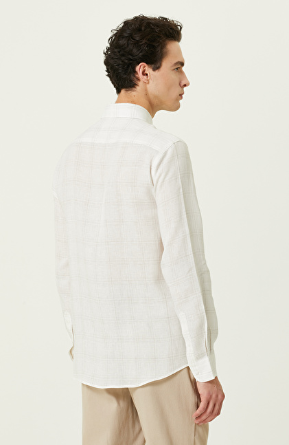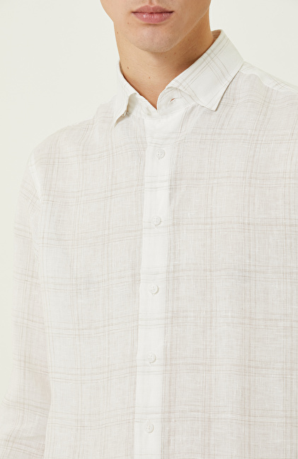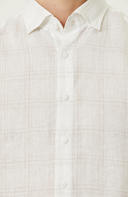 Ekru Ekose Keten Gömlek