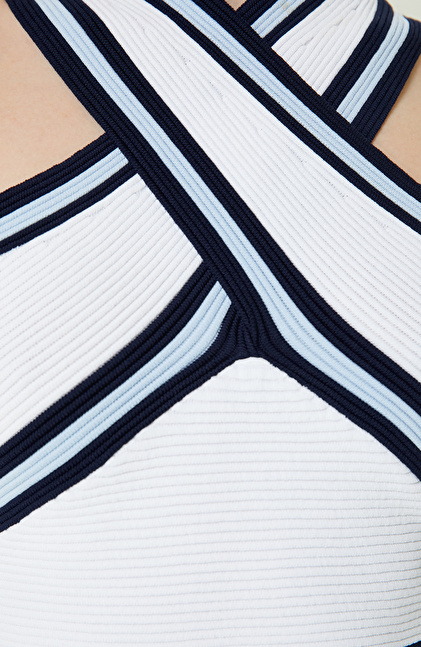 Ekru Indigo Mavi Çizgili Kazak