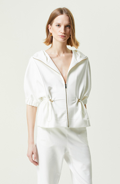 Ekru Kapüşonlu Kısa Kollu Ceket