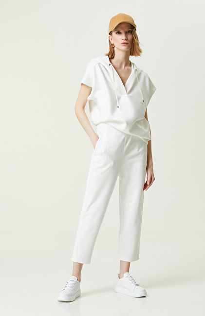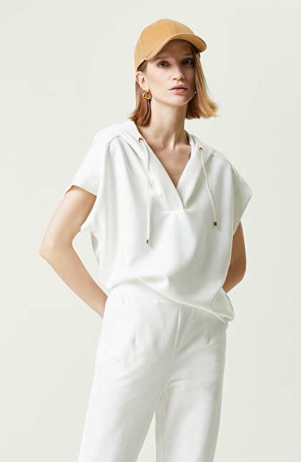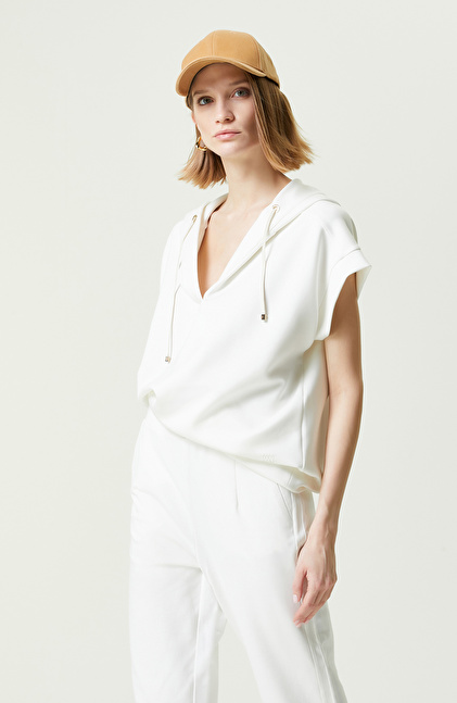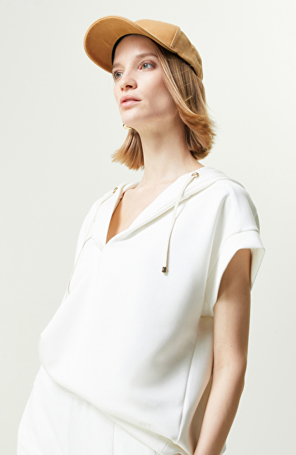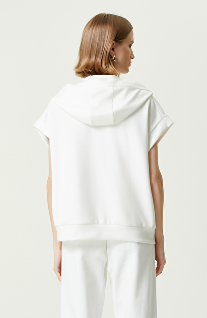 NETWORK Casual Ekru Kısa Kollu Kapüşonlu Sweatshirt