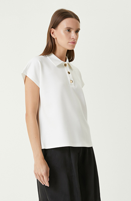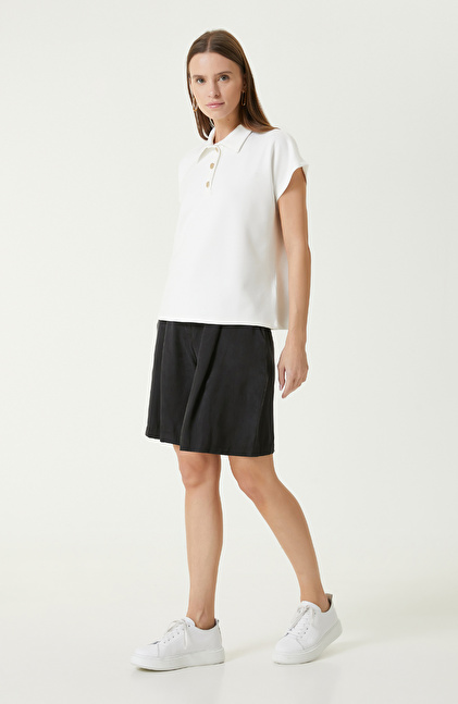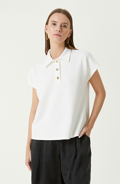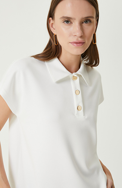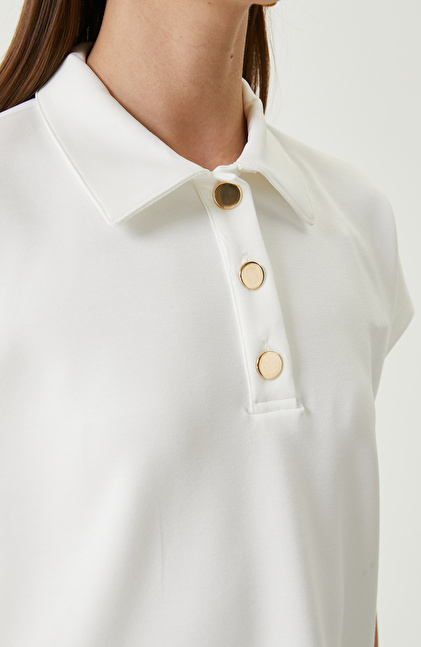 Ekru Kısa Kollu Sweatshirt