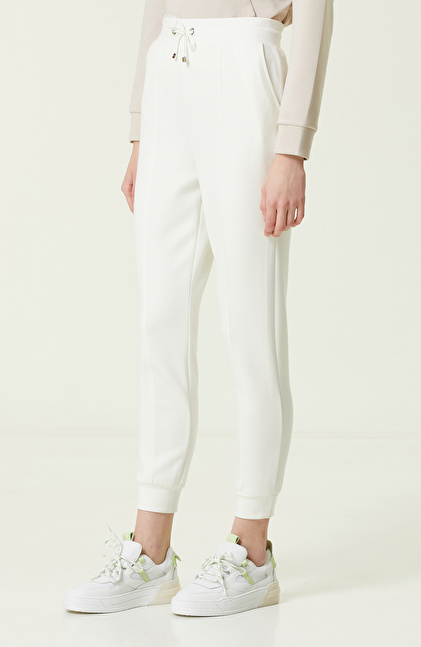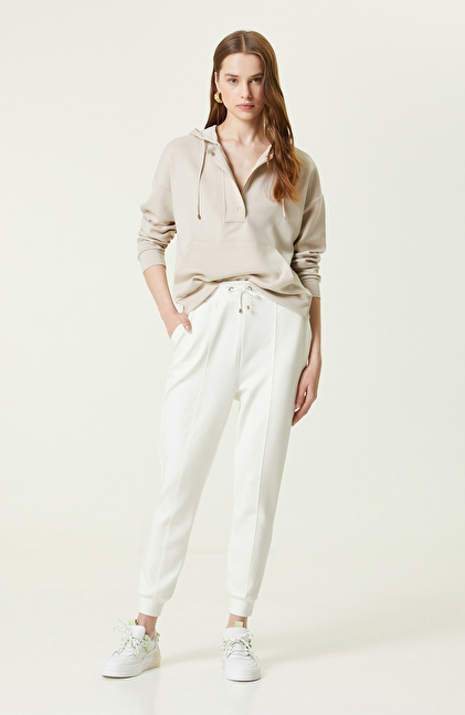 Koleksiyonunun kullanışlı ve şık parçalarından olan Ekru Lastikli Eşofman, Leisure serisinde yer alır. Sosyal yaşamda aktif kadınlara hitap eden tasarım, NetWork’ün çağdaş moda anlayışının yansımalarından biridir. Modal karışımlı yüksek kaliteli kumaştan üretilen model, penye doku hissiyatına sahiptir. Normal bel ve lastik paça detayları ile tasarlanan parça, basic fit kalıplıdır. Bel kordon detaylı slim fit modal eşofman, casual stilini yansıtır ve konfordan ödün verilmeden kullanılır. Etkileyici bir aura taşıyan kadınların tercihi olan parçayı; koyu renkli sweatshirt, benzer tonlarda spor ayakkabı ve halka küpelerle kombinleyebilirsiniz.