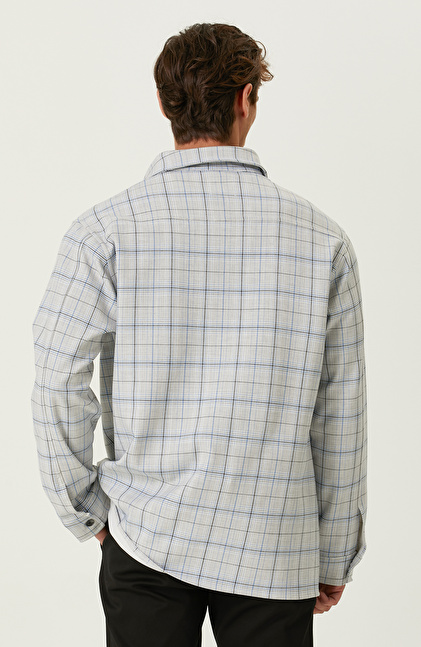 NETWORK Ekru Mavi Ekose Cepli Dış Gömlek