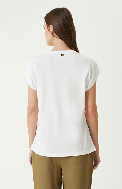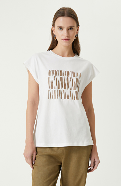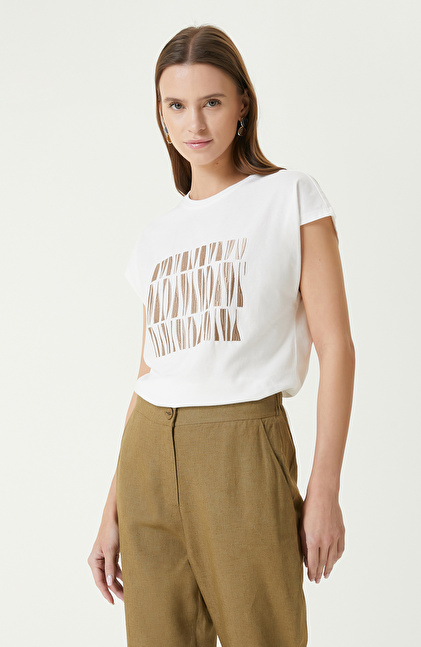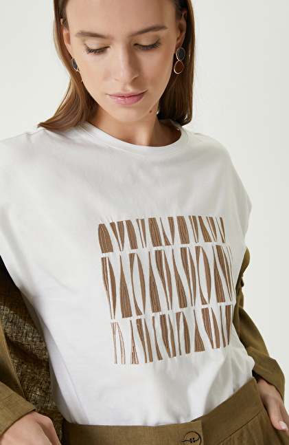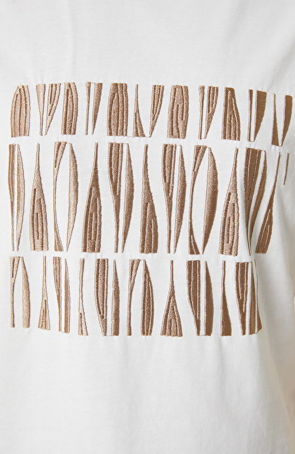 Basic Fit; Bisiklet Yaka; Kısa Kol; Örme T-Shirt; Kontrast Nakış Oyunlu