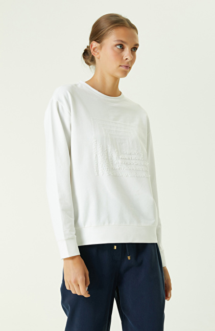 NetWork Special sonbahar/kış koleksiyonunun zarif tasarımı Ekru Payet İşlemeli Sweatshirt, trendleri takip eden şehirli kadınlara hitap eder. Bisiklet yaka, uzun kol ve basic fit kalıbıyla şekillenen model, inovatif kombinler oluşturmanızı sağlar. Üstün nitelikli dokusu ile konforu ön plana çıkan tasarım, kış stiliniz için mükemmel bir seçimdir. Zamansız moda anlayışını yansıtan sweatshirt, payet işlemeli detaylarıyla lüks bir görünüm sergiler. Denim pantolon ya da eşofmanlarla kolayca eşleşebileceği için casual kombinleriniz için de vazgeçilmez bir parçadır. Siz de bu kusursuz tasarımı; lacivert jogger pantolon ve beyaz sneaker modelleri ile tamamlayabilir, şık bir kombine imza atabilirsiniz.