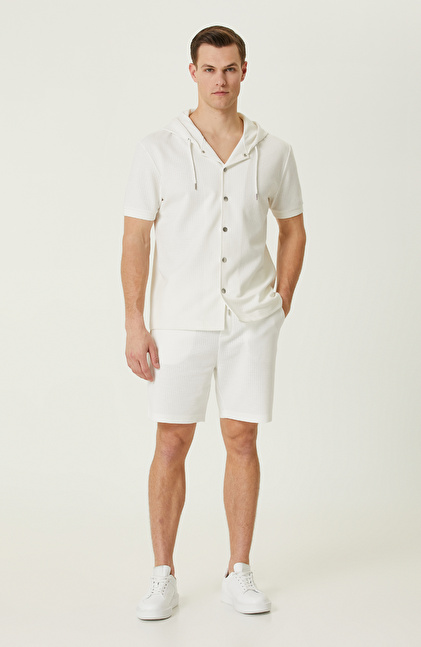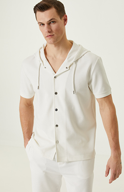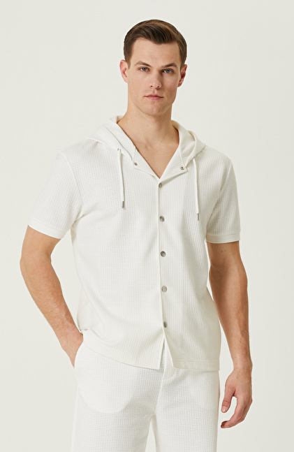 Slim Fit; Kapüşonlu Yaka; Kısa Kol; Petek Desenli; Penye Sweatshirt