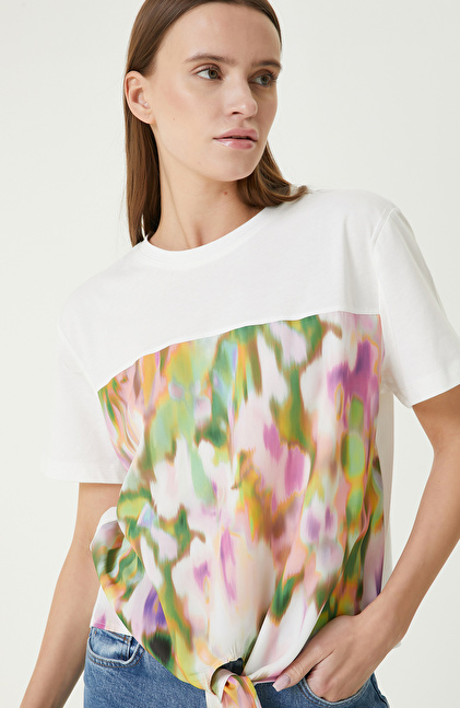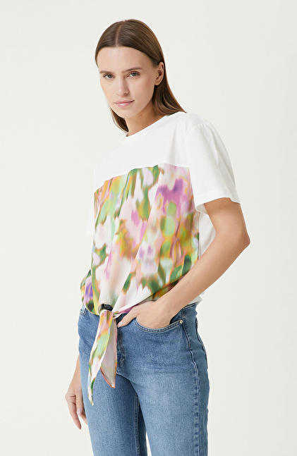 Basic Fit; Bisiklet Yaka; Kısa Kol; Penye T-Shirt; Önü Garnili; Bağlamalı
