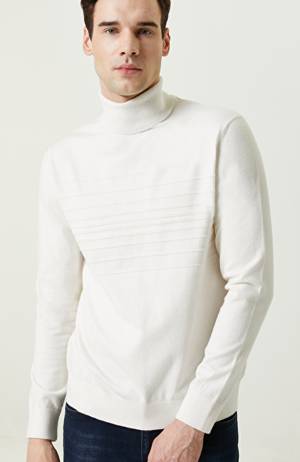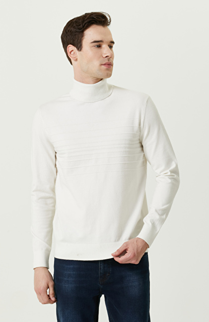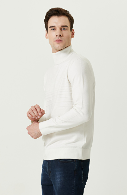 NetWork smart casual tarzını yansıtan tasarımı ile Ekru Nervür Detaylı Balıkçı Yaka Triko Kazak, kombinlerinizde hem şıklık hem de konfor elde etmenizi sağlar. Zamansız ve lüks moda anlayışı ile tasarlanan parça kış sezonunda elegan görünümünüzü destekler. Balıkçı yaka detayı, tasarıma iddialı bir dokunuş yapar. Yüksek nitelikli kumaşı ise hem konforlu bir doku sunar hem de şıklığınızı pekiştirir. Nervür detayları ile yenilikçi bir stil oluşturarak şehirli ve modern erkeklerin tarzını bir adım öne taşımayı sağlar. Ekru rengi ile lacivert denim pantolon, kahverengi ceket ve kahverengi bot kombinlerinde casual bir şıklık oluşturur.