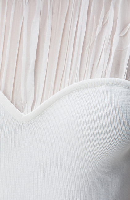 Slim Fit; Bisiklet Yaka; Tül Detaylı; Triko Kazak