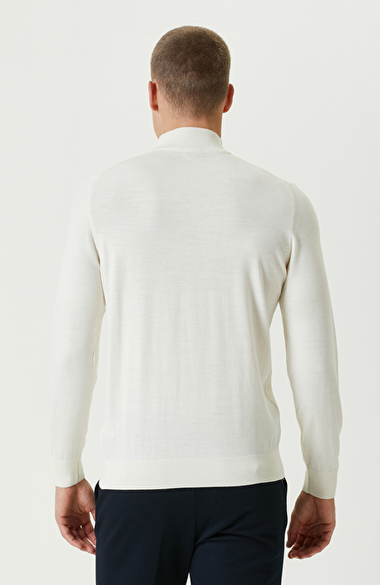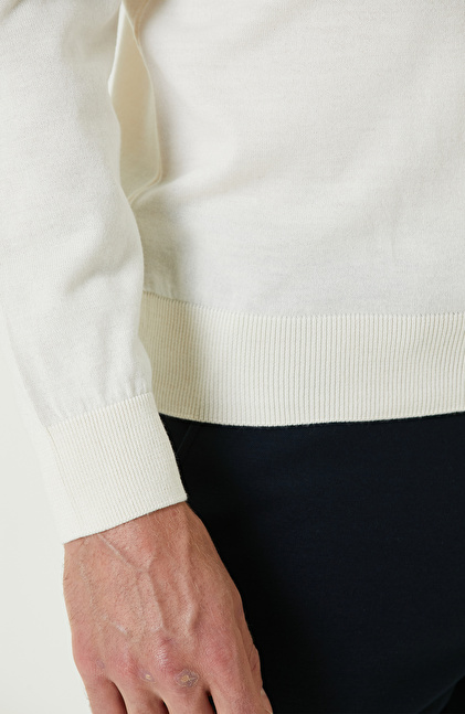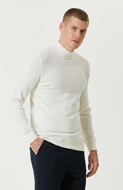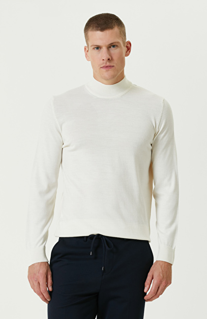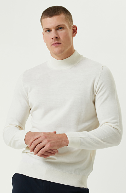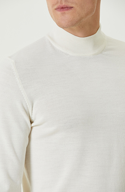 Ekru Yarım Balıkçı Yün Karışımlı Triko Kazak