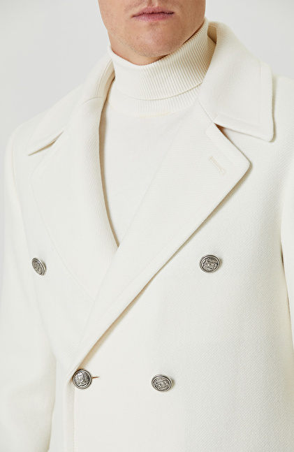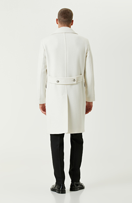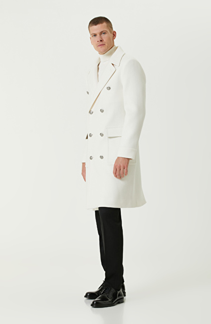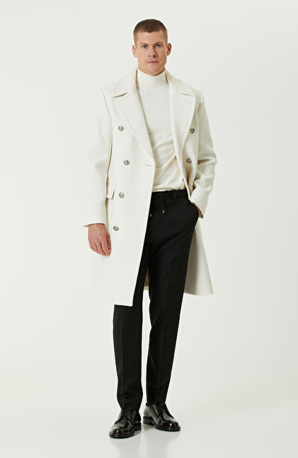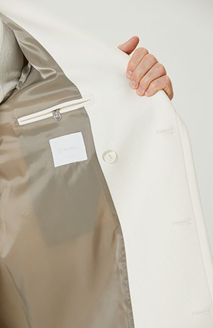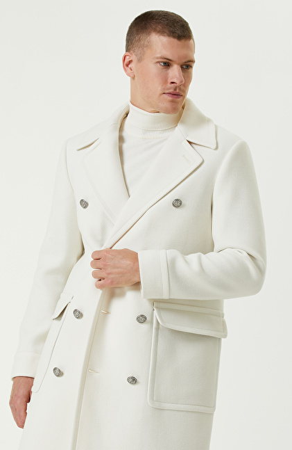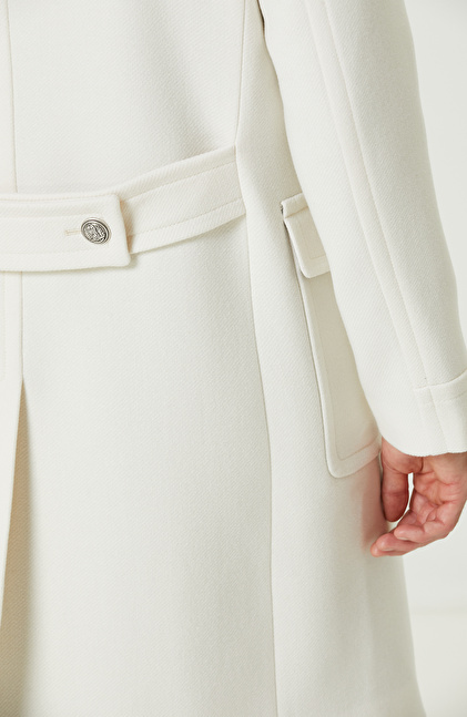 Ekru Yün Karışımlı Diyagonal Palto