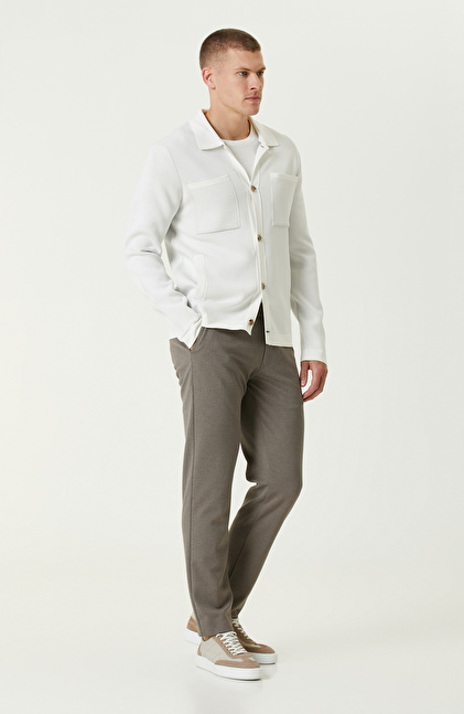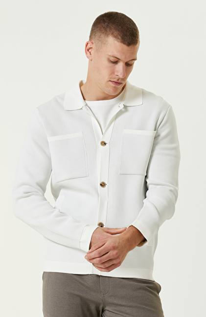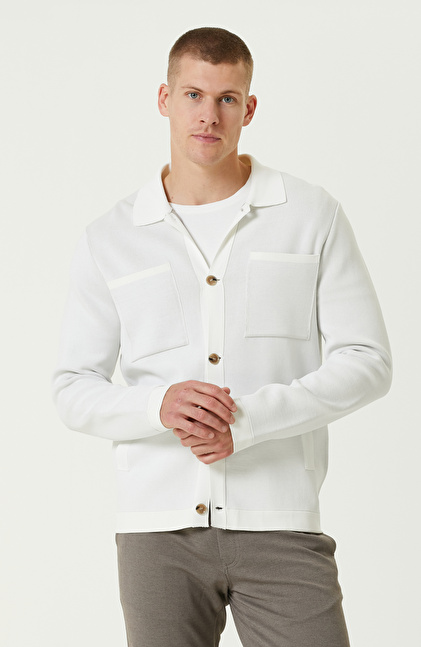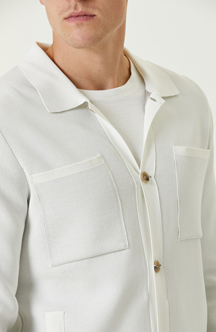 Ekru Yün Karışımlı Triko Ceket
