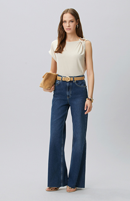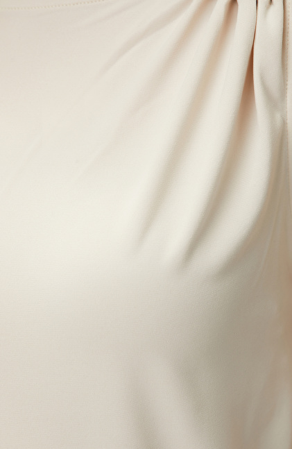 Beige Low Sleeve Shoulder Gold Accessory Knitted Blouse