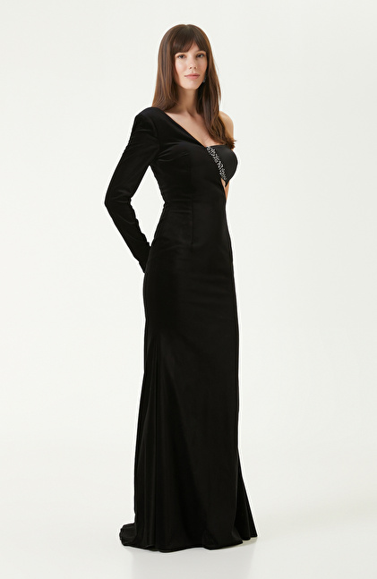 Black Velvet Maxi Evening Dress