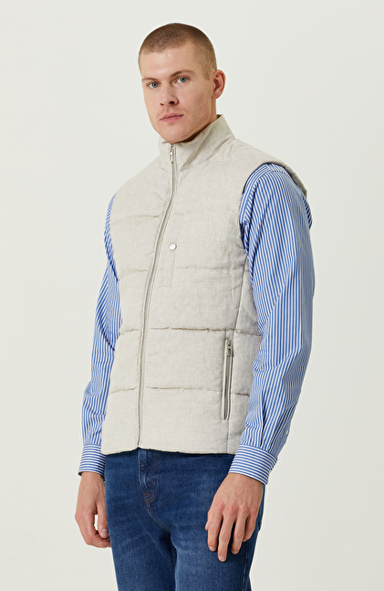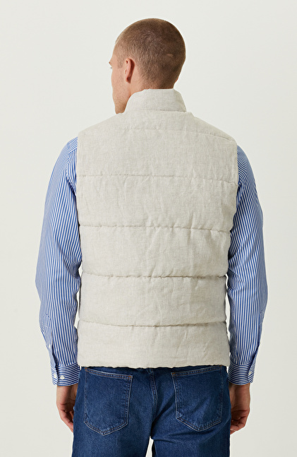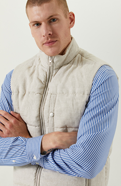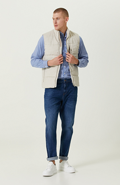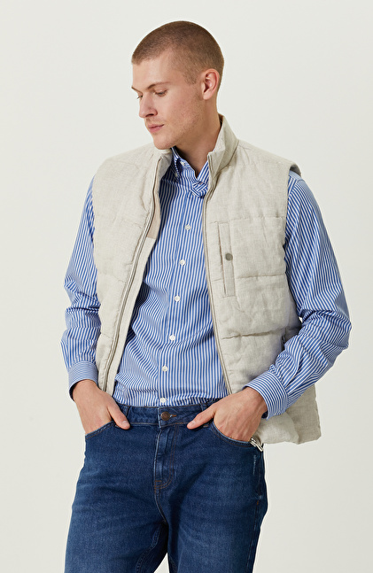 NetWork Smart Casual çizgisindeki Naturel Dik Yaka Casual Keten Yelek, contemporary urban stiliyle şehirli bir duruş sergiler. Yüksek kaliteli dokuma kumaşıyla ilkbahar dönemlerinde modern erkeklerin günlük hayatına konfor katar. Fermuarlı olan yan cepleri sayesinde günlük hayatta fonksiyonellik kazanır. Slim fit kalıbını normal bel ile bir araya getirerek konforlu bir kullanım sunar. Dik yakalı tasarımıyla dinamik bir görünüm yakalar. Yeleği, içine koyu renkli gömlekler kullanarak değerlendirebilir, lüks duruşunu kontrast oluşturarak lüks duruşundan faydalanabilirsiniz. Açık renkli pantolon ve gri detaylara sahip spor ayakkabılarla casual bir şıklık elde edebilirsiniz.