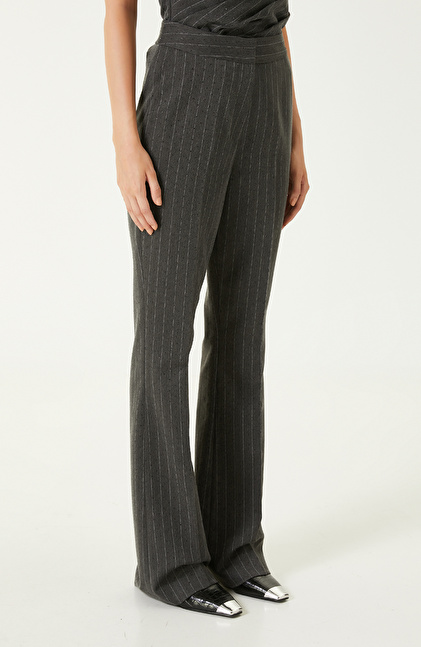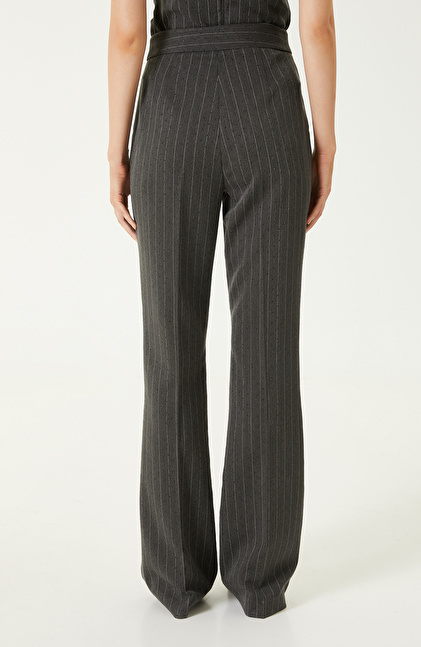 Dark Grey Stone Print Detailed Striped Trousers