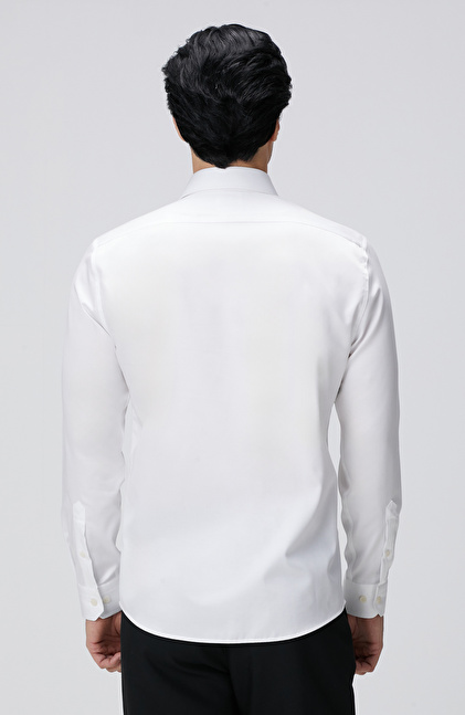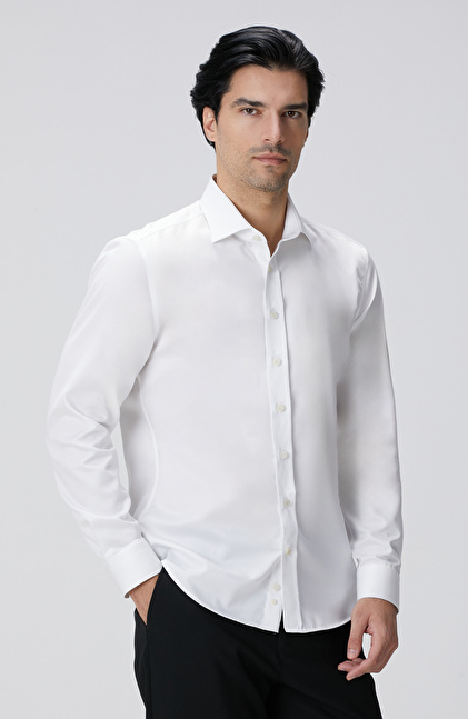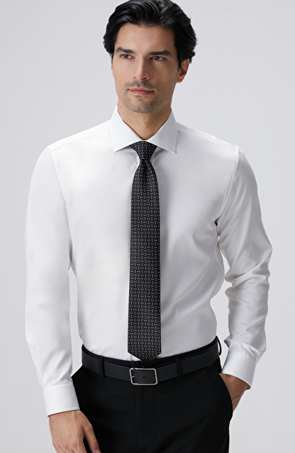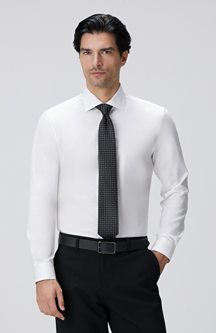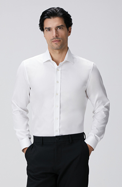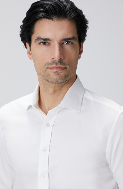 The Non-Iron Cotton Half Italian Collar White Shirt, a luxurious design from the NetWork Business winter collection, caters to socially active and stylish men with its special design details. The non-iron cotton fabric is woven to be wrinkle-free, providing convenient and effortless use. Its satin sheen helps you achieve eye-catching outfits, while the half Italian collar design brings Italian elegance to your ensembles. Featuring slim fit and pocketless design elements, the shirt pairs perfectly with suits and woolen trousers-jacket models, creating flawless winter looks. You can also combine this satin shirt with a navy blazer, anthracite trousers, black patent Oxford shoes, and classic wristwatches for a luxurious style.