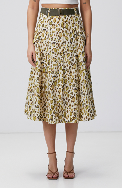 Green Patterned Midi Skirt