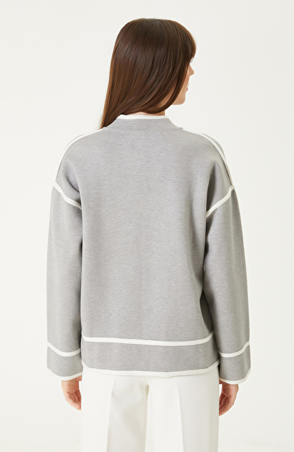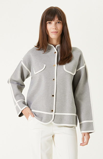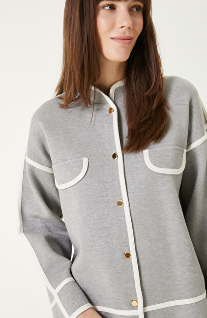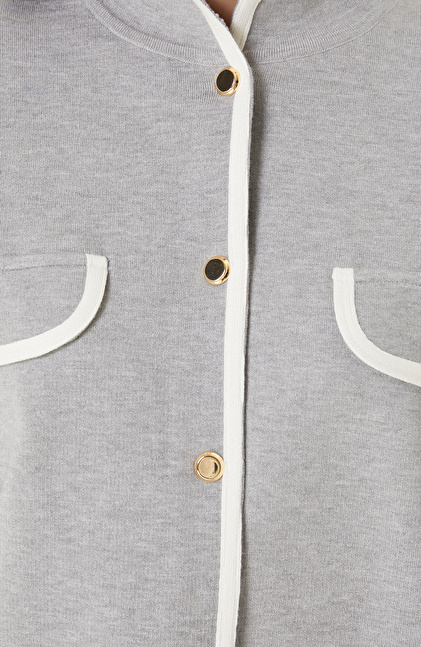 Grey Melange Piping Detailed Knitwear Jacket
