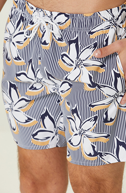Deniz şortu koleksiyonumuzda çeşitli desen, grafik çalışmaları ile stilize edilmiş modellerimiz sezonun trend renkleri ile çiçek ve çizgi desenin bir arada kullanımını vurgulamaktayız.Çeşitli renk ve desen seçenekleri, kişisel tarzınıza ve tercihlerinize uygun bir şort seçmenizi sağlar. Hem görsel açıdan çekici hem de işlevseldir.Renk solması veya deformasyon gibi sorunlarla karşılaşmadan uzun süre kullanılabilir.Yüzme keyfinizi en üst düzeye çıkarmak için ideal bir seçenektir.