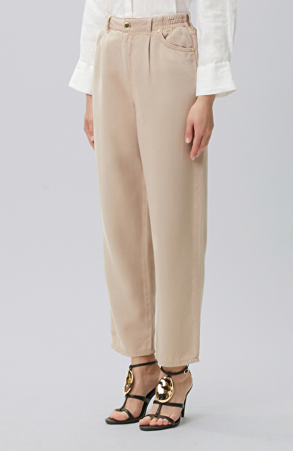 Mink Diagonal Patterned 5-Pocket Casual Trousers