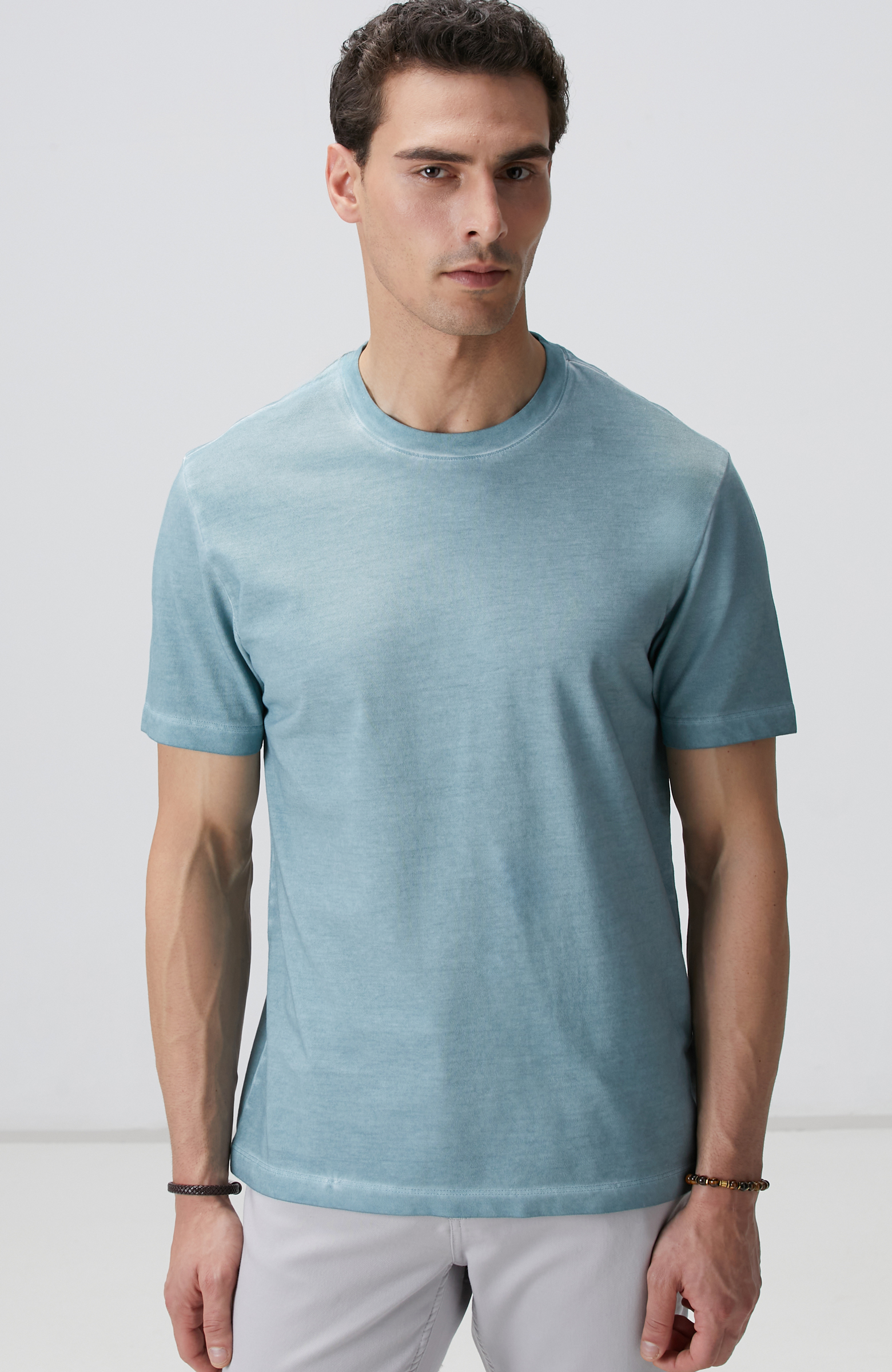 Comfort Fit; Bisiklet Yaka; Pike Dokulu T-Shirt