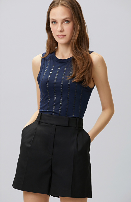 Navy Blue Bonded Stone Detailed T-shirt