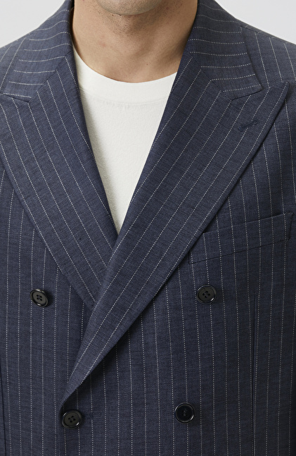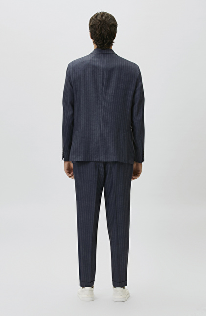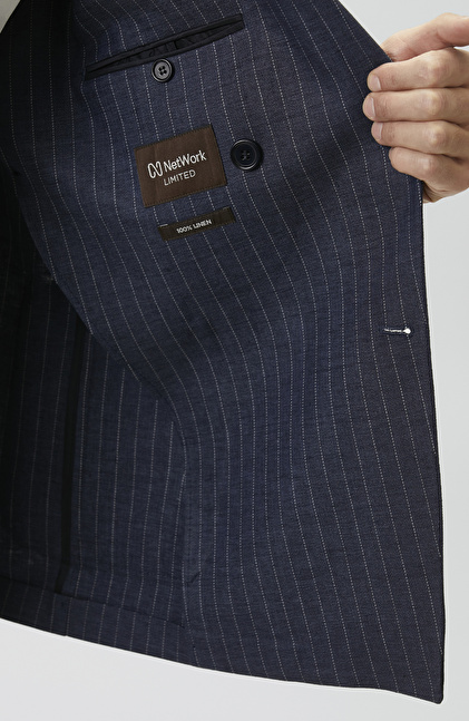 Navy Blue Limited Fabric Striped Linen Suit