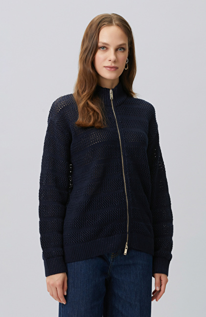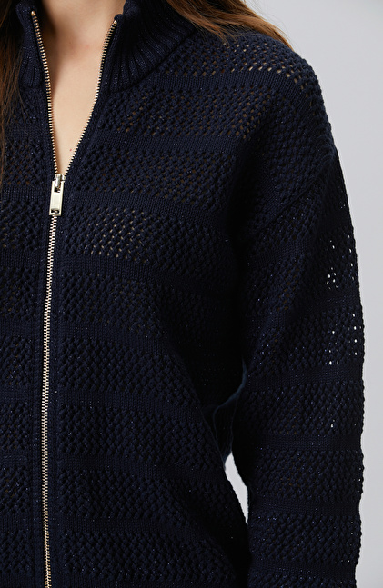 Navy Blue Silvery Openwork Cardigan