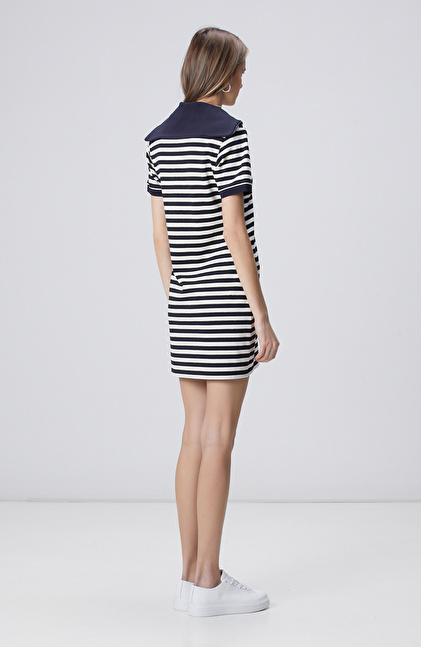 Navy Blue White Striped Mini Knitwear Dress