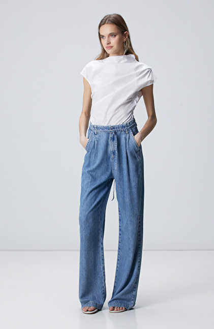Off White Asymmetrical Collar Blouse