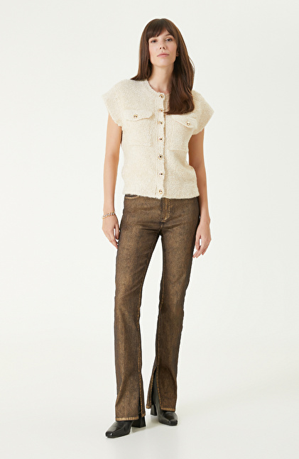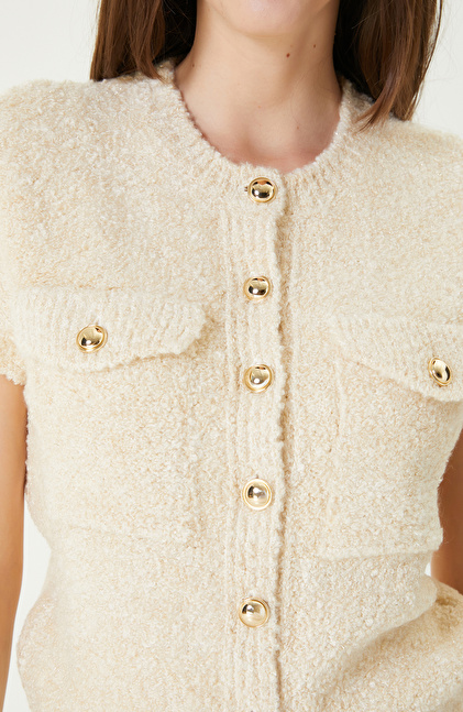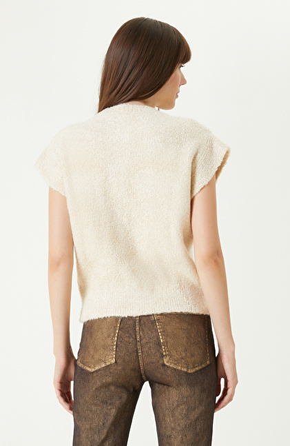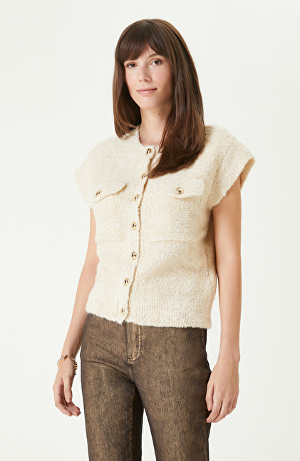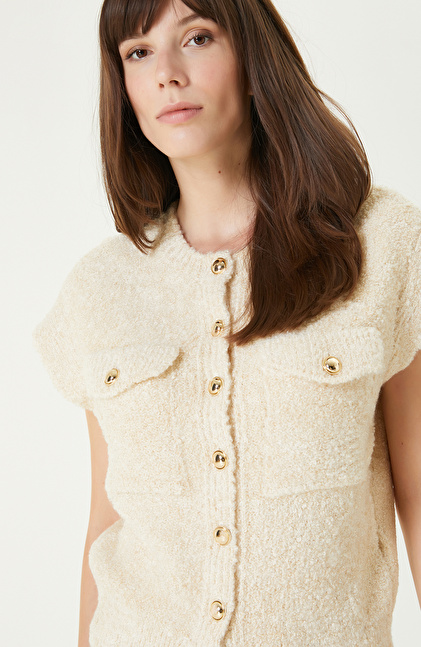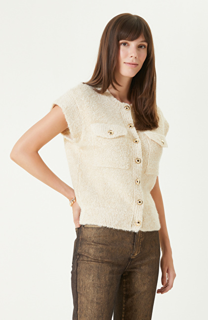 Off White Soft Textured Glittery Knitwear Jacket